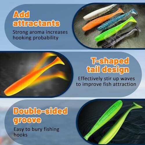 • PVC soft, elastic, and durable material with added shrimp oil scent to enhance attraction