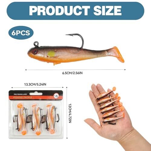 The six-lure set is compact for easy storage in tackle boxes and provides realistic design, color, and texture resembling live bait.