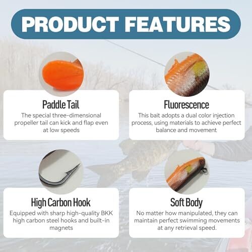 • Weighted bodies with paddle tails create natural, realistic swimming motion that entices a wide range of predatory species.