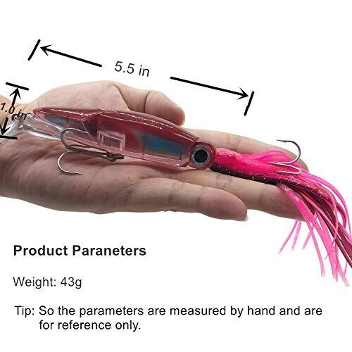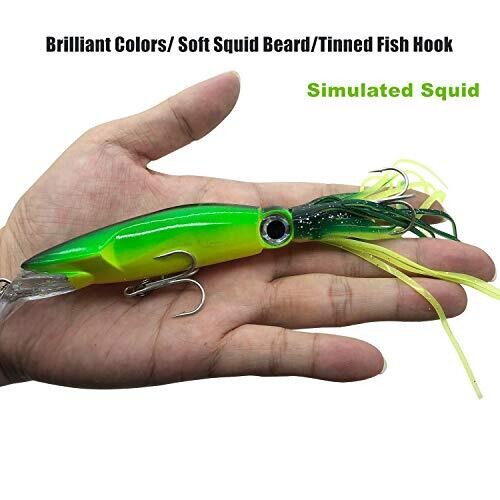 • Damidel 4 pcs Sim Squid Fishing Lures Kit with 5.5 In/43 G 3D Eyes Lead Blocks