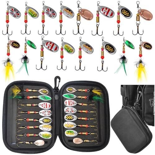 Naturezhen Spinner Lures for Freshwater Fishing, 16pcs with Carry Bag, Hard Metal Baits