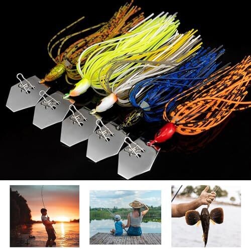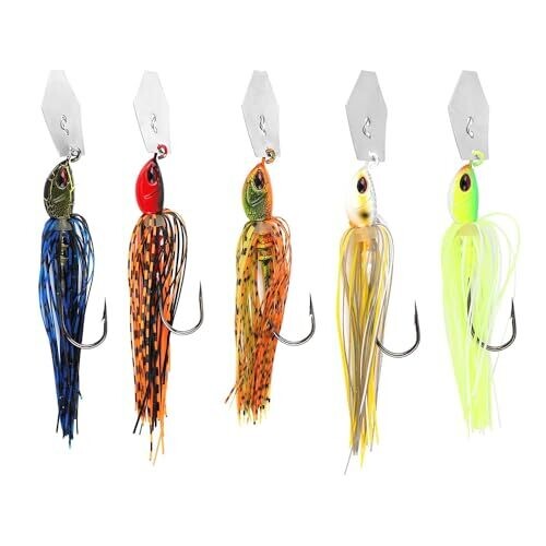 Nyghmy 5 pcs Multi-Color Bladed Jig Lures with Vibrating Action, Sharp Heavy-Stainless Hooks
