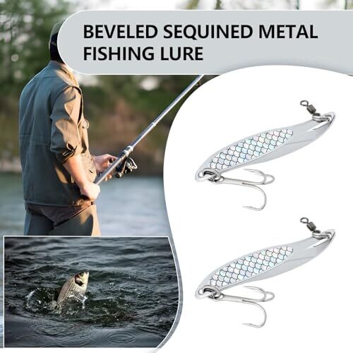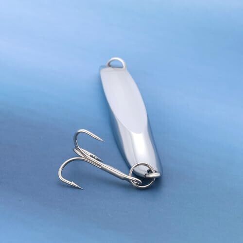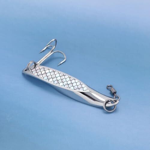 This 5-pack includes silver 65mm, 21g metal lures with wedge slice design. Each lure features sharp treble hooks and 10 swivels for reliable hookups and smooth casting, attracting bass, mackerel, trout, bluefish, pike and salmon.