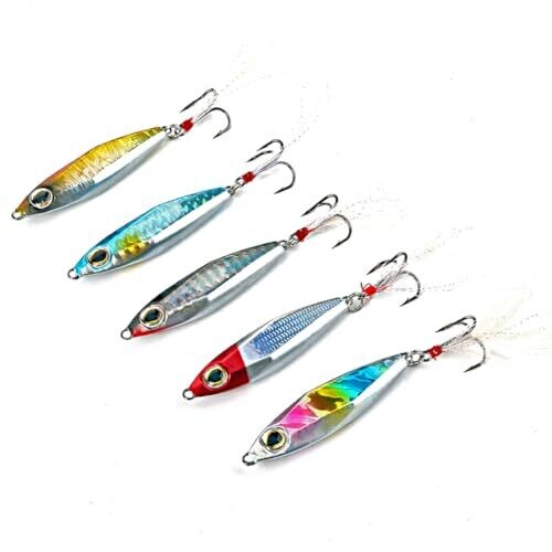 - Multi-color metal lures designed for eye-catching presentation in the water column.