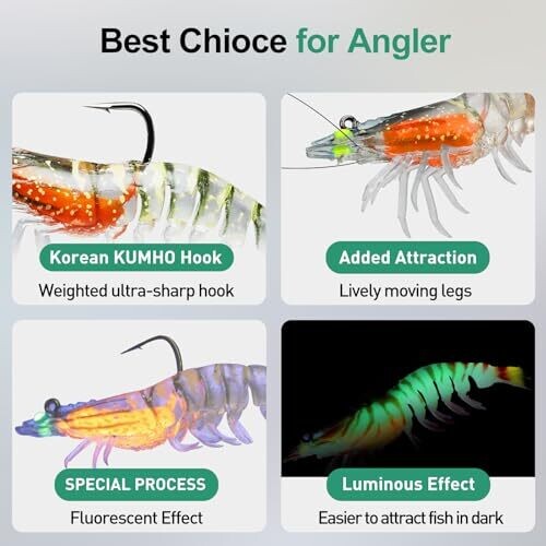 • Truscend Pre-Rigged Jigs, 1:50 Durable Tpe Lures, Lifelike Shrimp Crayfish Shad