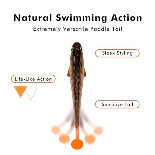 3D paddle tail produces turbulence and motion; wired through construction for durability and strong hooks.