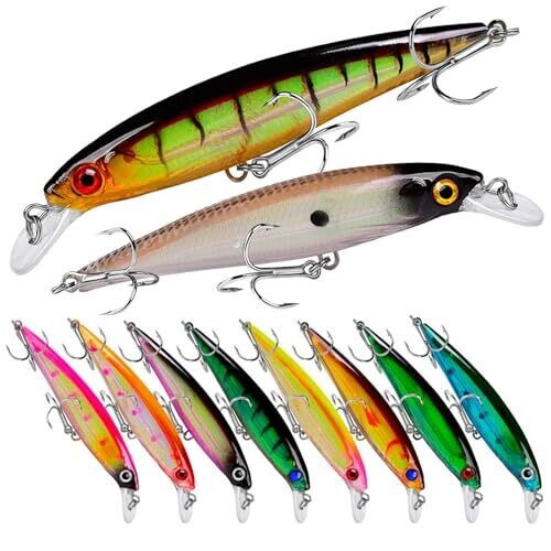 • Volksrose 10-Color 3D Lifelike Fishing Lures Kit - Sea-Ready Hooks for Bass/Trout/Pike Catcher