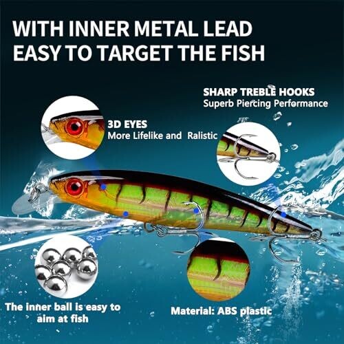 • Premium 11 cm/13.4 g fishing lure kit designed to boost strike chances in both saltwater and freshwater environments.