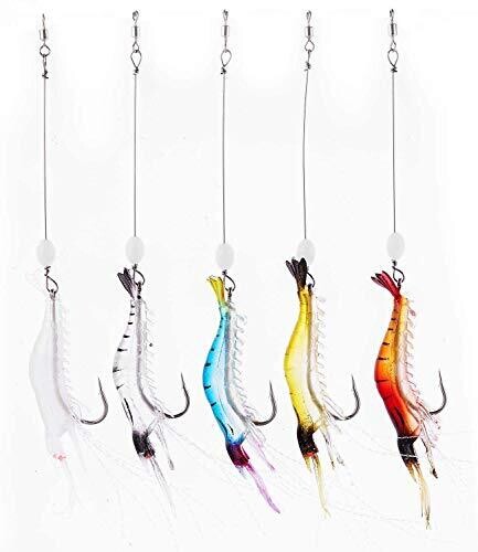 • Wanby Silicone Soft Bait Set Luminous Swimbait Shrimp with Hooks (5pcs)
