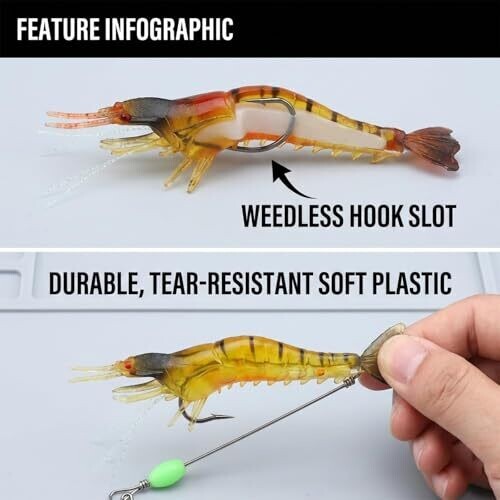 - Hyper-realistic soft shrimp lure crafted to trigger strikes with a predator-ready profile.