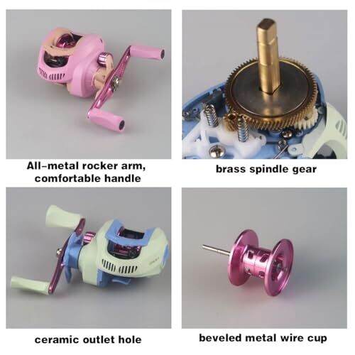 This high-performance baitcasting reel delivers smooth, long casts with 18+1 ball bearings. Available in macaron colors, it features a brass spindle gear and ceramic outlet for durability in freshwater and saltwater, with a versatile left/right handed design.