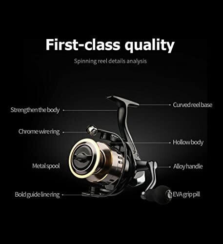 Ultra-versatile spinning reel with 22 lb max drag for fighting bigger fish yet compact. EVA handle provides non-slip grip for all-day comfort. Robus t metal gears and rocker arm with brass spindle for durability. Left/right retrieve; lightweight for small species.