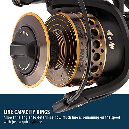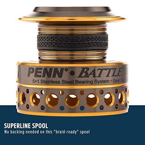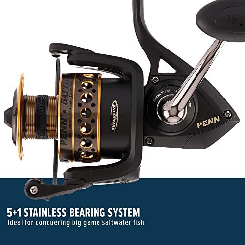 Penn Battle III Spinning Reels 6000 (Black Gold), 5.6:1