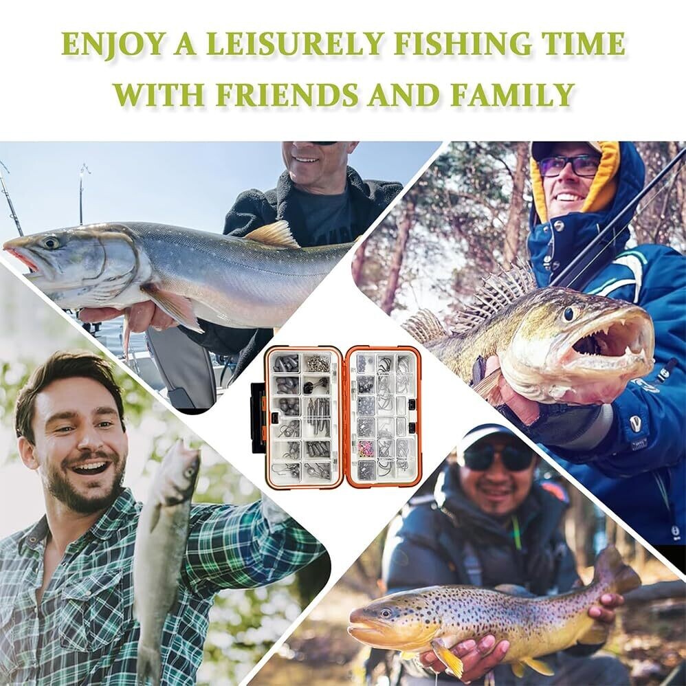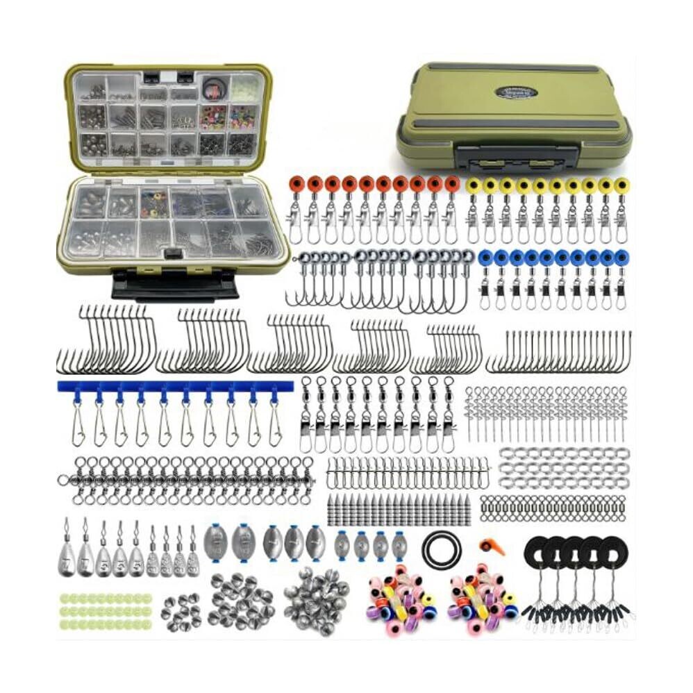• 410 pcs Fishing Tackle Box Kit with Hooks, Weights, Sinkers, Swivels for Bass