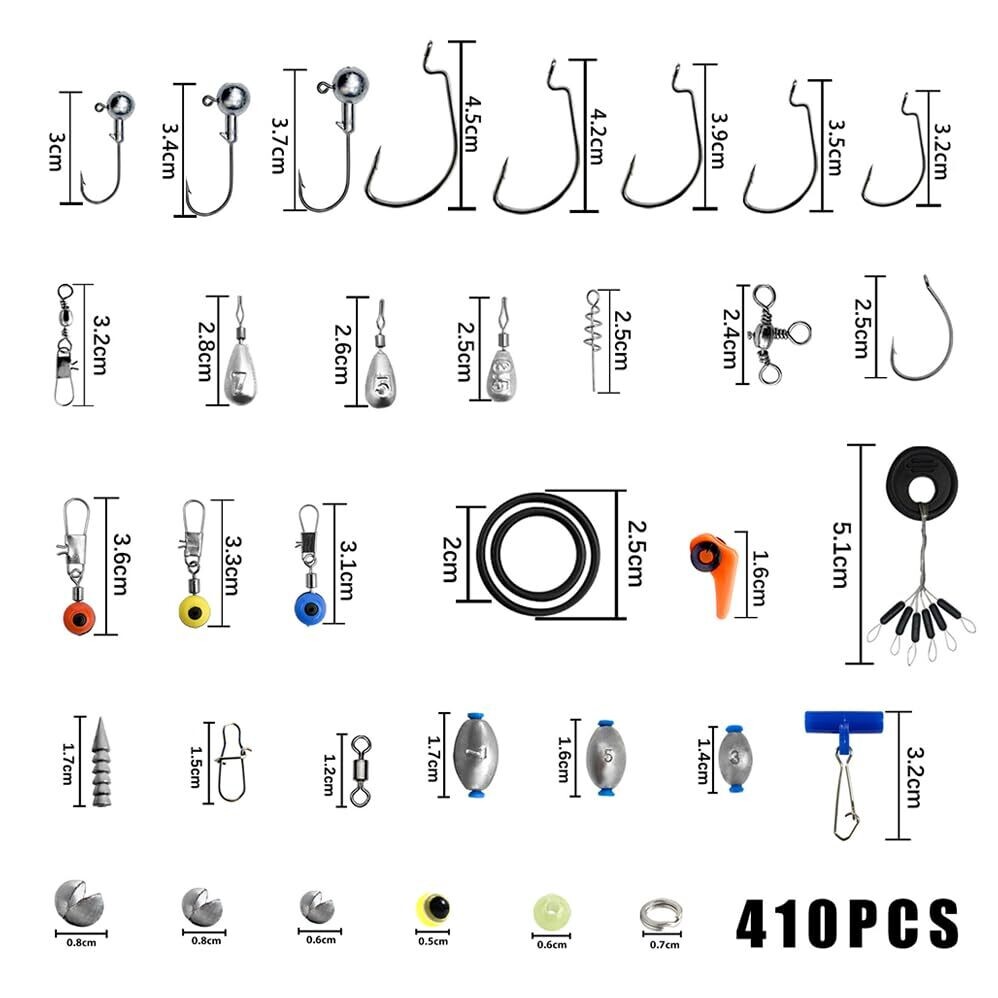 410 pcs Fishing Tackle Box Kit with Hooks, Weights, Sinkers, Swivels for Bass