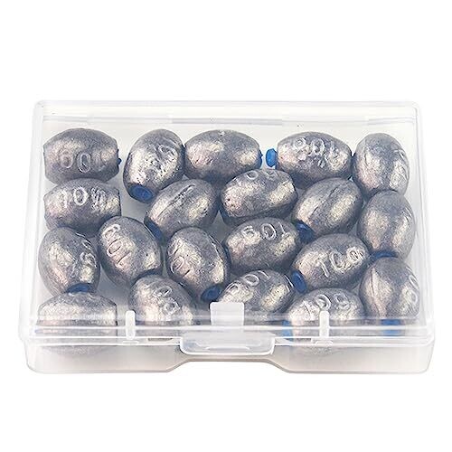 Ekind Egg Sinkers Fishing Olive Shape Lead Oval Bass Casting Kit (20pcs,10G)