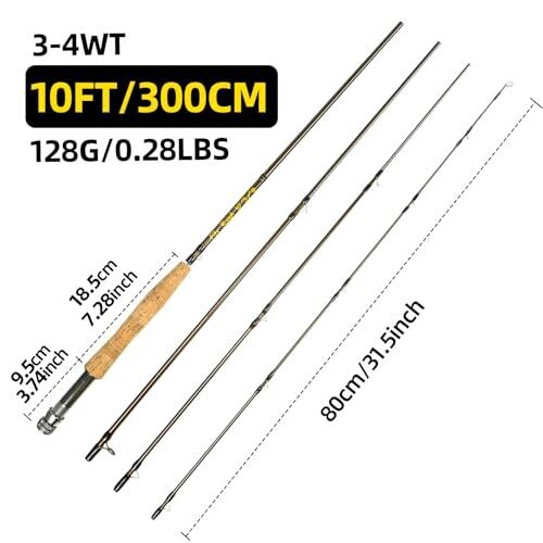 Channelmay 8ft 3-4Wt or 5-6Wt 4-Piece Graphite Carbon Fly Rod Light Feel Medium-Fast Action