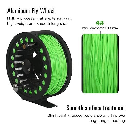 Aluminum alloy fly reel; smooth and far casting; with fishing line.