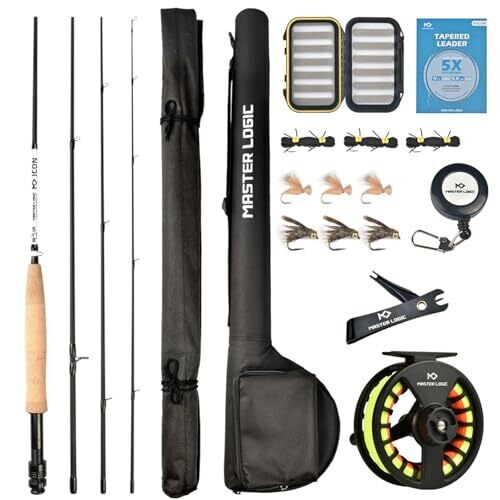 Master Logic Fly Fishing Rod and Reel Starter Kit, Graphite Rod with Cork Handle, Die Cast Reel, Box & Flies (5/6Wt-8'0