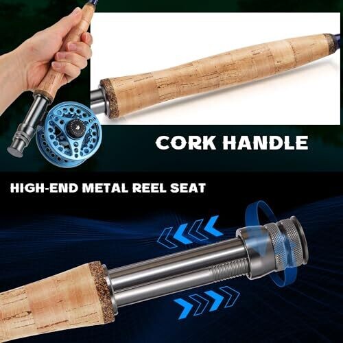 Sougayilang Fly Fishing Rod and Reel Combo, 4-Piece Rod and Aluminum Alloy Reel Starter Kit with Bag-Blue-#5
