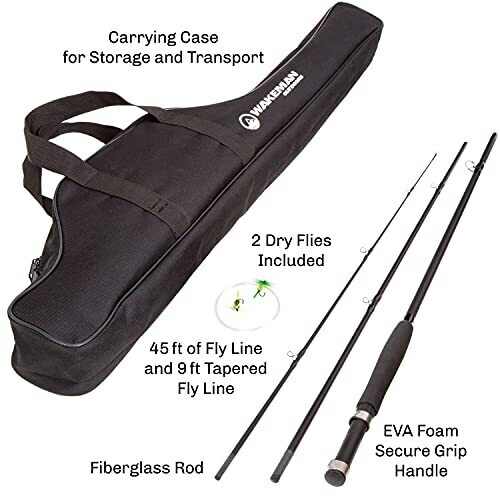 Wakeman Fly Fishing Rod and Reel Combo – Fishing Line, Flies, Case Included (Black), 35"