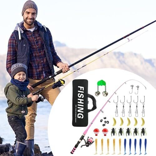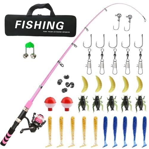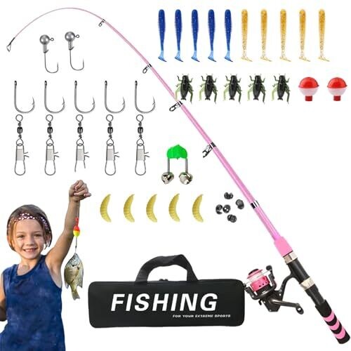 Fizepgo Kids Fishing Rod Set - Small Beginner Kit, Portable First-Year Extendable Rod with Bag