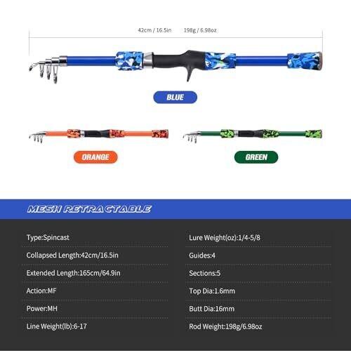 • Designed specifically for kids, this 165 cm telescopic fishing rod makes fishing fun, safe, and easy to handle for ages 5–12.