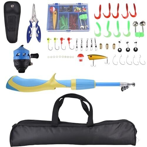 Perfect for young anglers, this lightweight, kid-friendly set features a telescopic rod and easy-to-use reel. The portable 51.2-inch setup stores in a backpack, includes baits and accessories, and its blue finish makes it a durable, educational gift for ice and lure fishing.