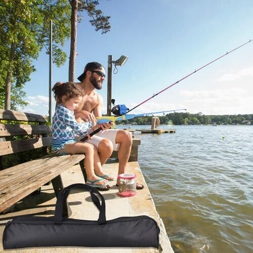 Kids Fishing Pole Set, Telescopic Rod Reel Combo with Lures, Tackle Box and Foldable Stool Bag