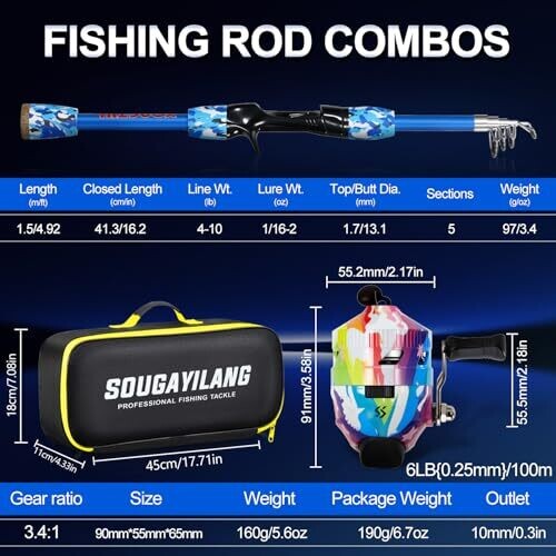 • YONGZHI Kids Fishing Rod and Reel Combo offers a bright, kid-friendly fishing kit designed for beginners and family fun.