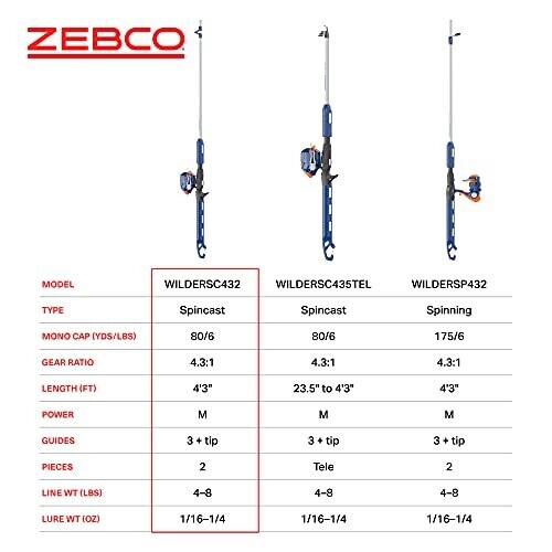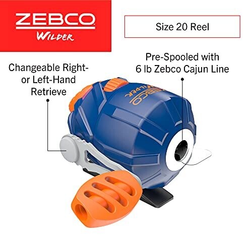 Designed for young anglers, this lightweight Zebco Wilder combo is sized for kids with a bright blue/orange color and easy spincast operation. Pre-spooled, ready to cast, with reversible retrieve for growing skills and built for family trips.
