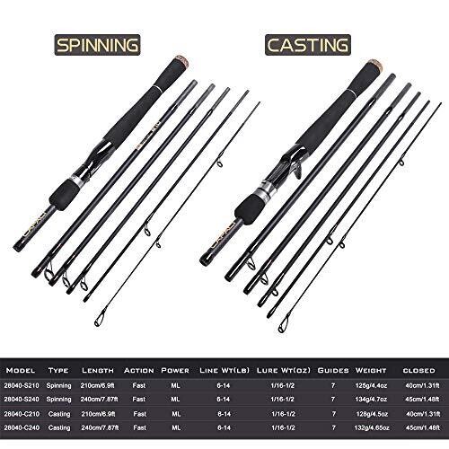 • Nurdo 2.1m / 2.4m 6 Sections Carbon Spinning Casting Fishing Rod Lure Fishing Rod Hand Pole Fishing Tackle