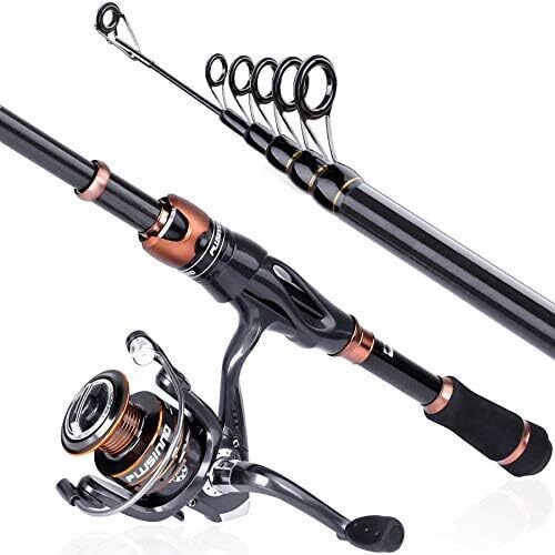 Plusinno Fishing Rod and Reel, Bronze Warrior Carbon Matrix Telescopic Rod, 12+1 Bearings Reel