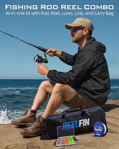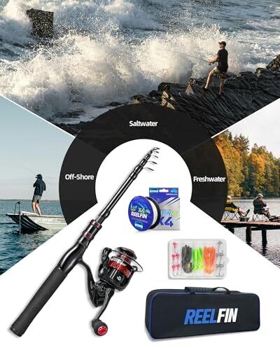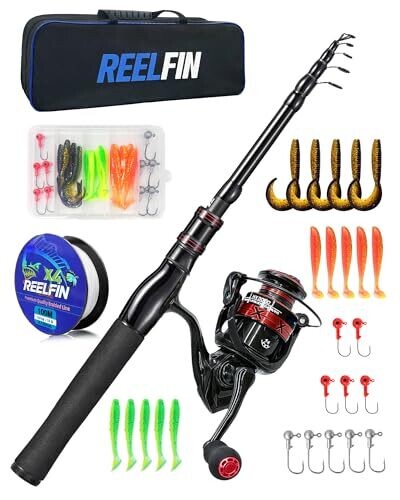 ReelFin Fishing Rod and Reel Combos, Telescopic Fishing Pole with Reel Combo for Sea Saltwater Freshwater Fishing Rod Kit (Spinning 1.8M Full Kit with Carrier Case)