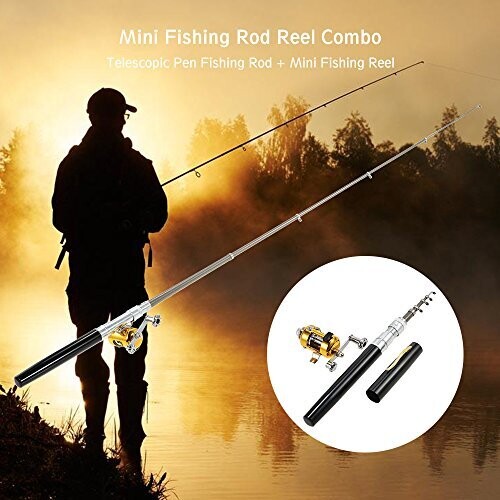 • Walmeck Fishing Rod Reel Combo Kit Telescopic Portable Pocket Pen Rod Pole + Reel Black
