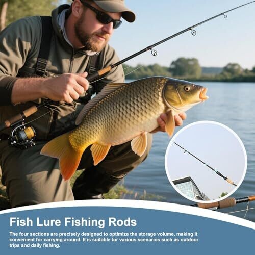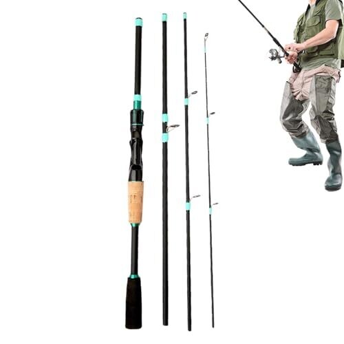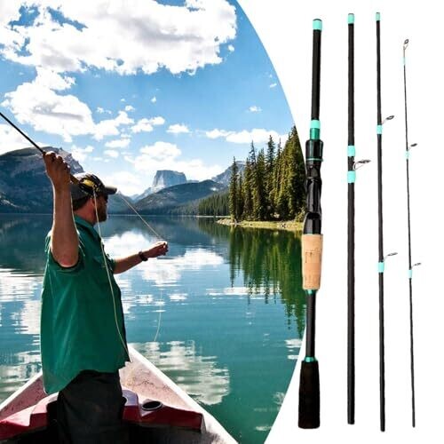 4 Section Fishing Rod - Fiberglass Travel Rod, Portable Pole for River, Kayak, Beach