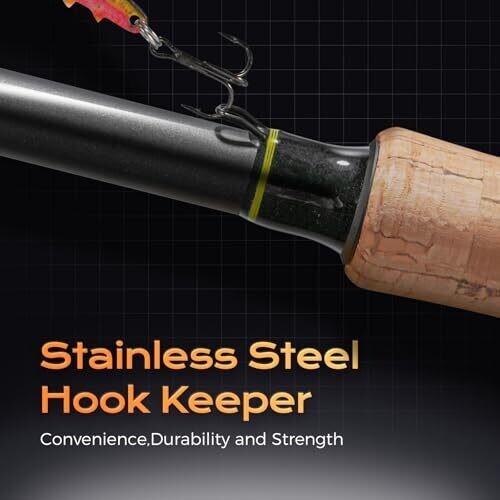 • Integrated stainless steel hook keeper keeps lures secured and organized between spots.