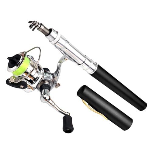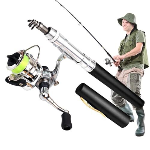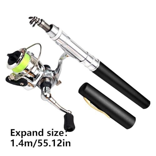 Ultra-compact pen-style fishing rod kit includes rod, reel, and 100-meter nylon line for quick setup. Made from high-strength aluminum alloy, it balances durability with lightweight portability for freshwater and light seawater use in streams, lakes, and rivers; pocket-friendly for backpacks.