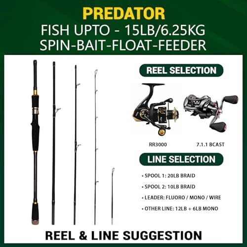 - Suitable for spin fishing, lure fishing, bait fishing, bait-cast fishing, carp, bass, coarse, game, float and light sea fishing.