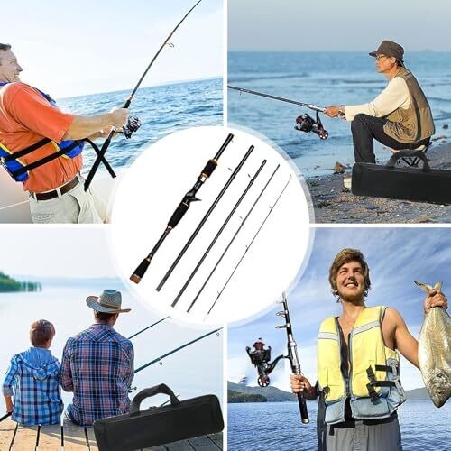 • Bsbkoj Portable Fishing Rod Lightweight 2.1-Meter Baitcasting Rod Removable